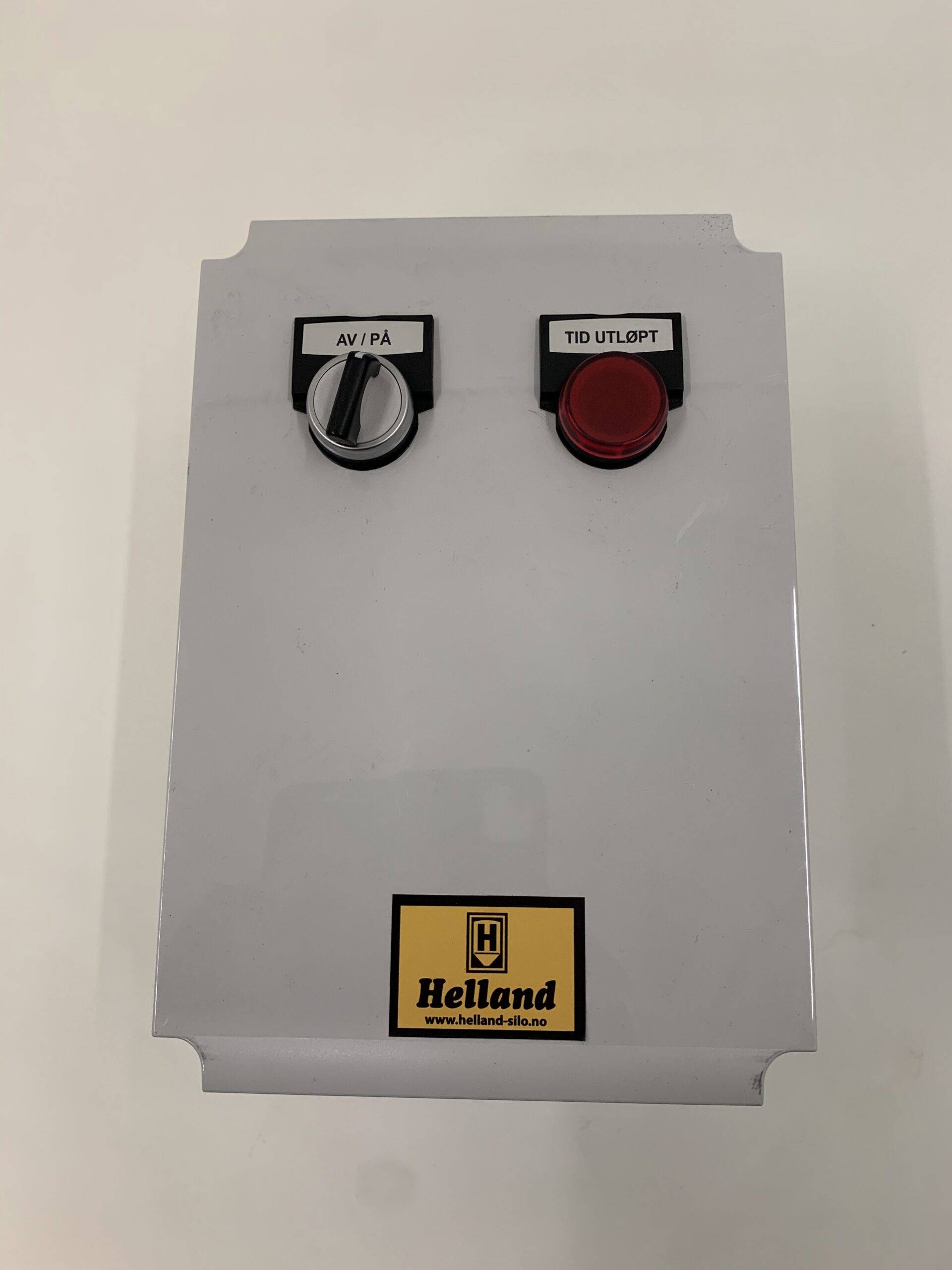 Timer-relé sikrer at fôrskruen aldri kan gå lenger enn innstilt makstid. Dette forhindrer at hele siloen tømmes ved feil eller uønsket drift.