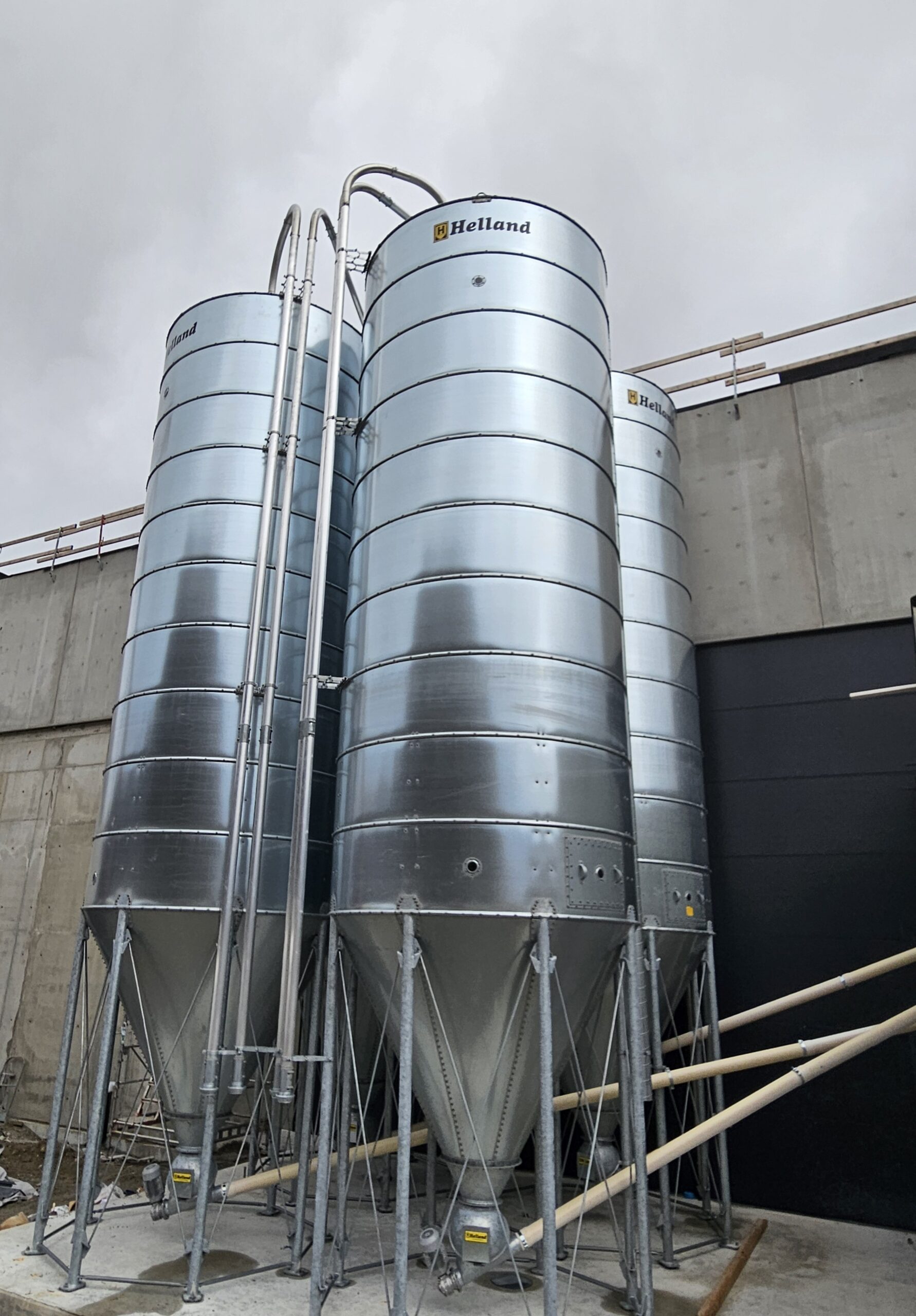 Siloen håndterer alt fra kraftfôr og pellets til soya og mineraler – perfekt for gårder som trenger fleksible lagringsløsninger.