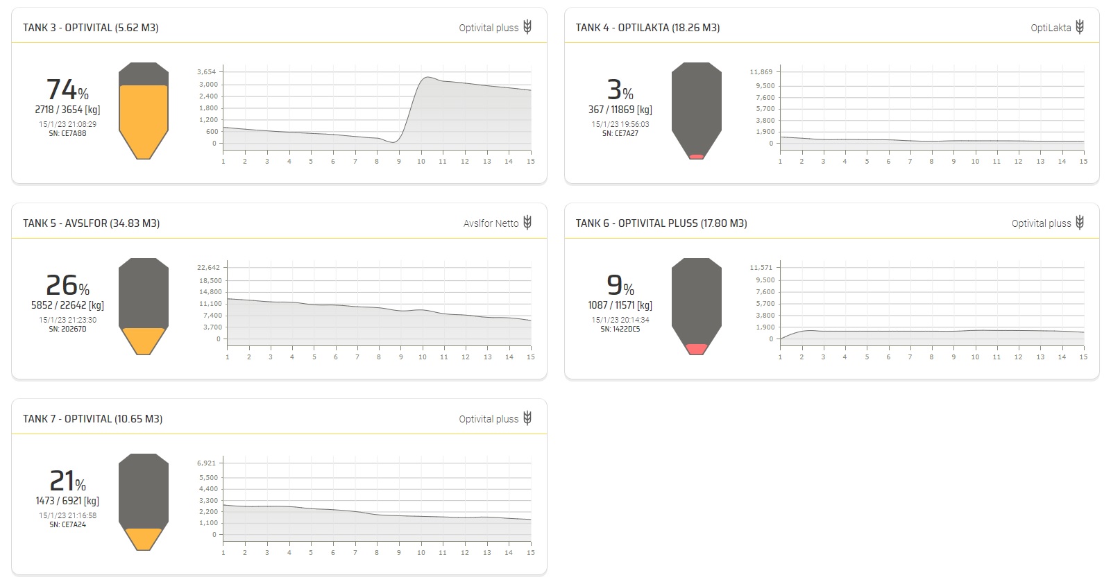 Trådløs lasersensor hvor du hele tiden full oversikt over innhold i siloene: